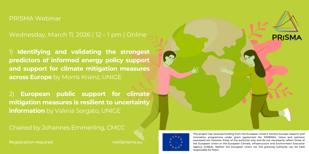 This PRISMA Webinar brings together cutting-edge research that sheds new light on these questions, drawing on large-scale empirical studies across Europe and innovative methodological approaches. Chaired by Johannes Emmerling (CMCC), the webinar will feature two presentations by researchers from the University of Geneva (UNIGE).